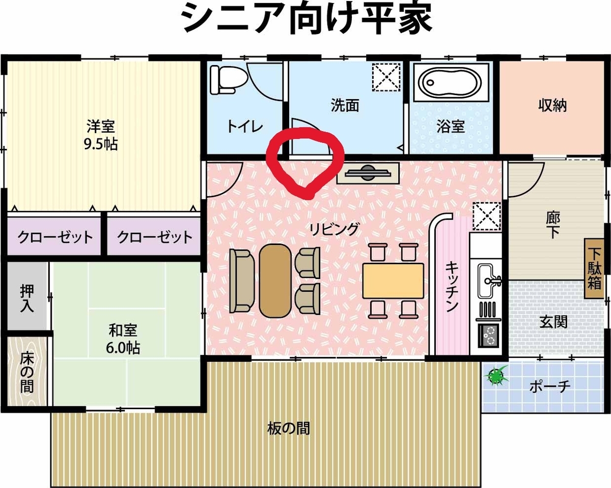 ※シニア向け平屋と書いてありますが、似たような間取りがこれくらいしかなかったのでその部分は気にしないで下さい。